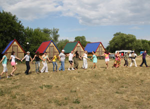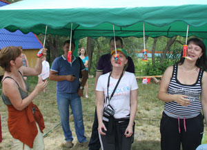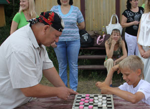 В этом году спортсмены всех возрастов состязались в командном первенстве, где должны были быстро надуть шары и выстроить из них дом, умудриться, съесть без помощи рук висящую конфету, промчаться по траве не «ледянке» и выполнить еще массу смешных заданий. Соревновались в игре в дартс, шашки, шахматы, играли в волейбол и бадминтон.